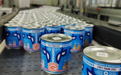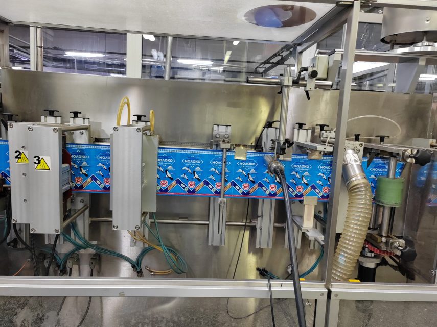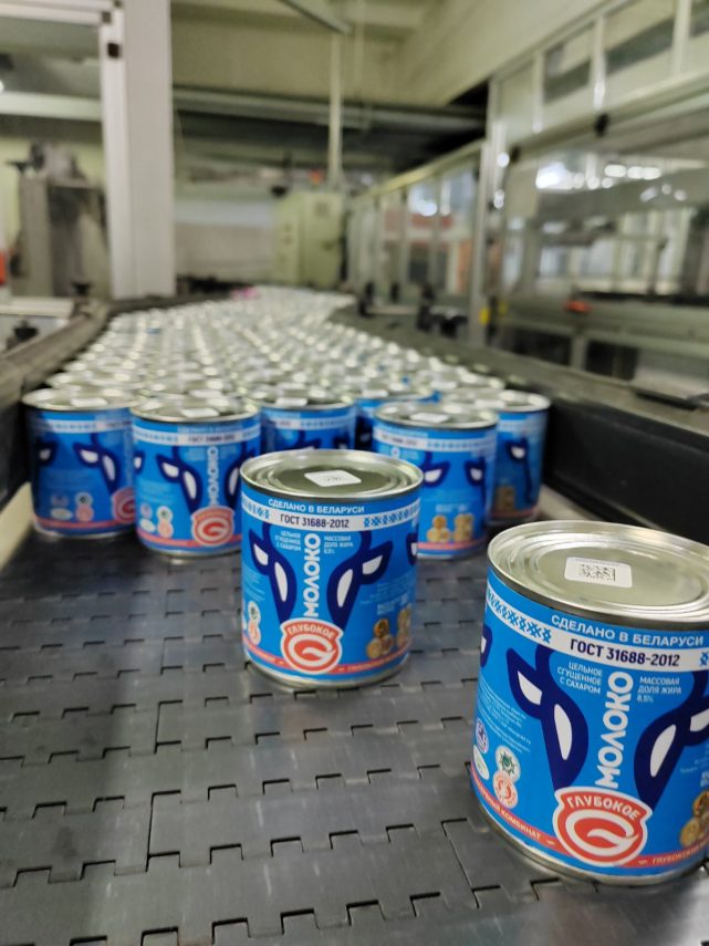 Переработка молока осуществляется на оборудовании фирмы «Альфа-Лаваль». Отобранное лабораторией молоко охлаждается на пластинчатых охладителях и направляется на промежуточное хранение. Далее молоко поступает в аппаратный цех, где очищается на сепараторах — молокоочистителях, нормализуется по жиру на сепораторах-сливкоотделителях, очищается от бактерий разных форм на сепораторах- бактофугах, и проходит тепловую обработку на пастеризационно-охладительных установках. После этого молоко направляется на сгущение. Для производства молока сгущенного с сахаром сгущение проводят на вакуум-выпарных аппаратах типа «Виганд-8000». Для производства консервов без сахара сгущение проводится на пленочном вакуумвыпарном аппарате «Шеферс-6000». Расфасовываются молочные консервы в жестяную банку, упаковываются в транспортную тару и штабелируются на поддоны на комплексных линиях фирмы «Альфа-Лаваль» (Швеция) и фирмы «Zilli-Bellini» (Италия). Кроме жестяной тары сгущенное молоко фасуется также в полимерную тару: в пакеты типа дой-пак и ламинированные тюбики, в крупную тару — полимерные ведра, объемом 10 литров, ламинированные мешки «Bag-in-box», объемом 20 литров, картонные барабаны и полимерные бочки, объемом 50 литров, автомолцистерна.
